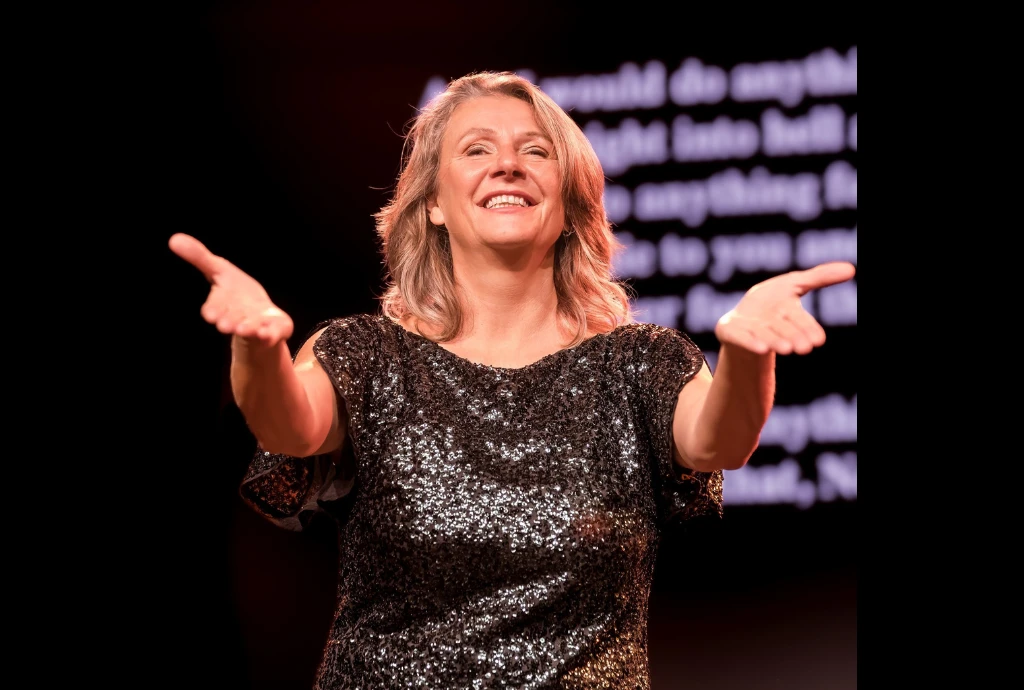 „Die Denk“ steht seit 25 Jahren auf der Bühne und ist immer authentisch. Das strahlt auch ins Publikum, wenn sie mit ihm singt. Laut, offen, herzlich. Dieses Mal zum Valentinstag, zu dem sie verspricht, „nur positive Liebeslieder mit zu bringen“, um diese gemeinsam mit dem Saal zu intonieren und so die Liebe, die Musik und das gemeinsame Singen zu feiern.